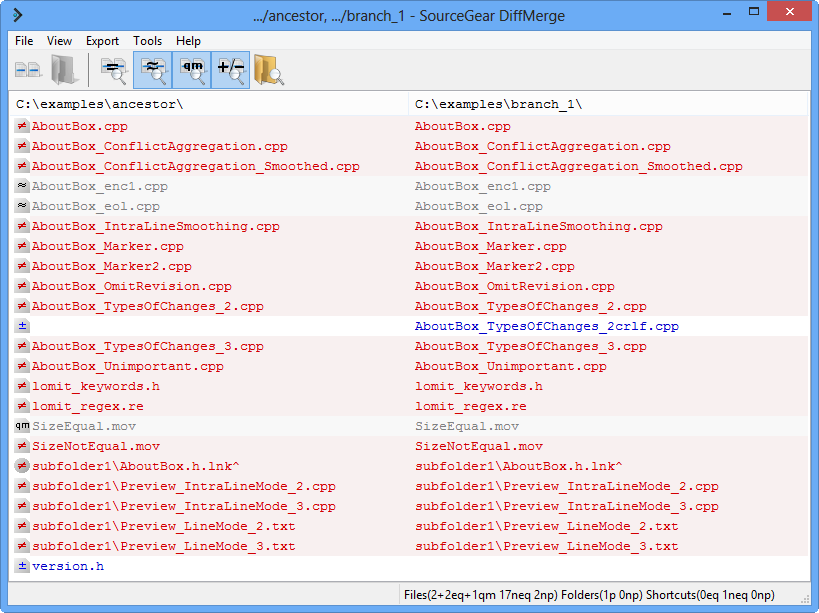 Performs a side-by-side comparison of 2 folders, showing which files are only present in one file or the other, as well as file pairs which are identical or different.