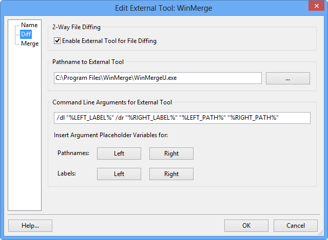 arguments given to DiffMerge. Otherwise, they default to the pathnames of the corresponding files. %LEFT_PATH %RIGHT_PATH%