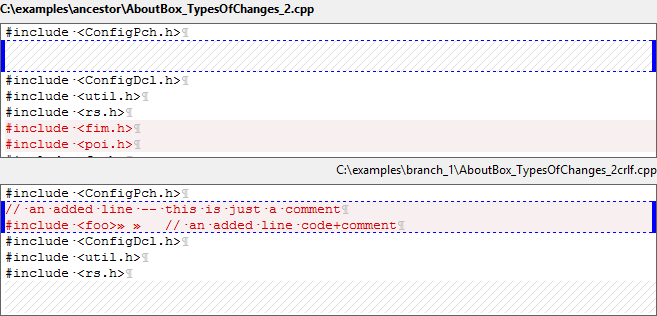 DiffMerge also lets you view the files panels one above another with horizontal “splitters” between them. In this mode, it may be a little difficult to see the line correspondence, but you should be able to see the entire line in each file. In this mode, the order of the files is the same: editing takes place in the bottom panel in a File Diff Window and the center panel in a File Merge Window.