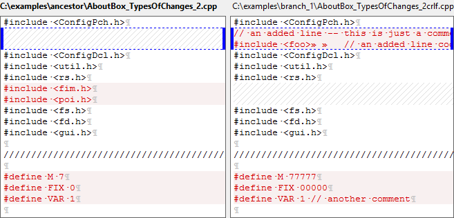 By default, DiffMerge shows the file panels side-by-side with vertical “splitters” between them. This mode allows you to easily see and match up the corresponding lines in the files. However, you may have to scroll horizontally to see parts of a line.