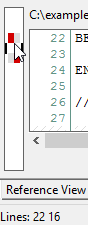 ![]() | The Glance Bar can be used to find changes and scroll the file panels to a specific line or change. Simply move the mouse over the Glance Bar and click. The corresponding line numbers are displayed in the status bar as you move the mouse. |