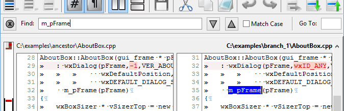 This panel replaces the Find Dialog and Go To Line Dialog found in previous versions of DiffMerge.