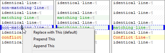 Highlighed Changes are surrounded by a dotted line. When a change is highlighted, it may be acted upon by the Apply Change... commands and the custom right-mouse context menus. You can also use the Next/Previous Change commands to jump between changes.