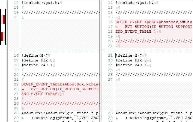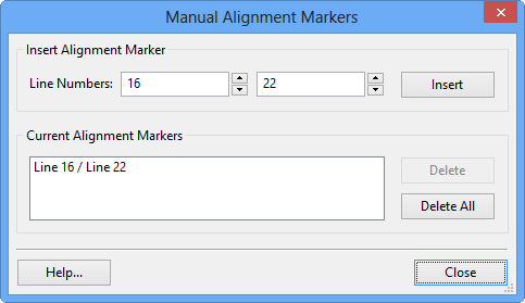 You can add Manual Alignment Markers to force the alignment of a set of lines in the difference analysis. Markers are drawn as a pair of dashed lines between two lines of text.