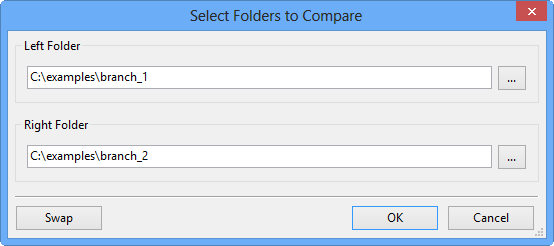 You can open Folder Window by selecting File | Open Folder Diff from the menu. This raises the Select Folders to Compare Dialog and allows you to type or browse to the pathnames of the folders you wish to compare: