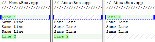 The Inter-line Smoothing Threshold causes small groups of equal lines between two changes to be marked as part of one combined change. Inter-line smoothing can be thought of as “clumping” nearby changes into a single change.