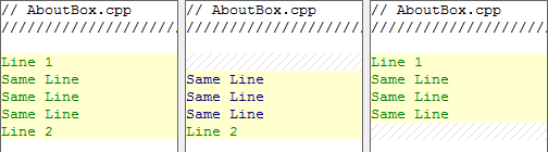 When the smoothing is set to 3 or more, we see that they have been combined into 1 change that includes the identical lines between them: