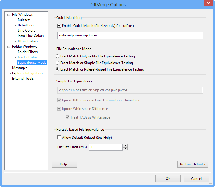 The Equivalence Mode Page lets you configure how Folder Diff Windows compares files.