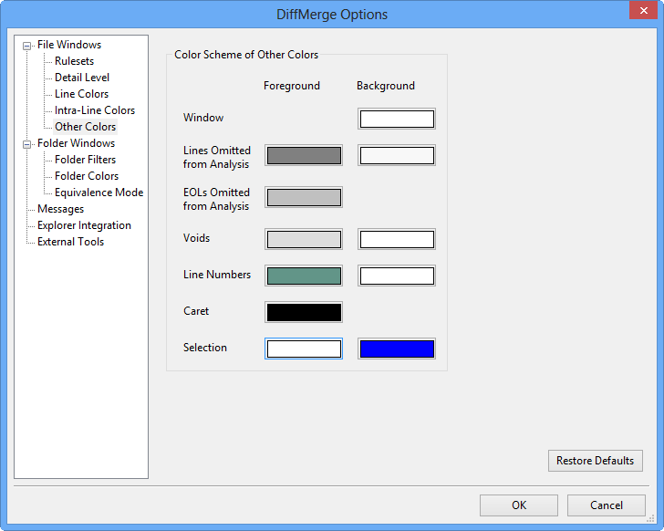 The Other Colors Page lets you to set the various colors used to draw miscellaneous items in File Diff and Merge Windows.