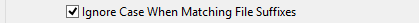 Ignores the case of the file suffixes when matching.