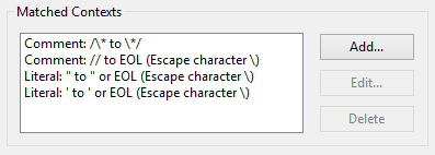 The list box shows all of the defined context patterns. The Add... and Edit... buttons will let you create a new pattern or modify an existing one using the Context Dialog.