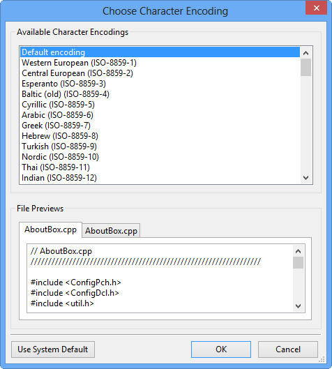 Use this if you have files of this type in multiple encodings on your system and need to do arbitrary comparisons. This gives you maximum flexibility and lets you select an encoding on a file-by-file basis.