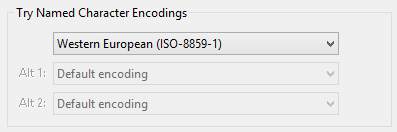 Each of the controls in the Named Character Encoding section have a list of all character encoding converters on the system.