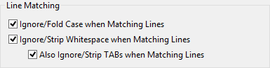 These options let DiffMerge ignore whitespace and letter case when vertically aligning and matching up lines. Generally, this allows DiffMerge to achieve the best vertical text alignment.