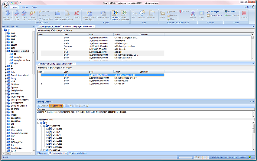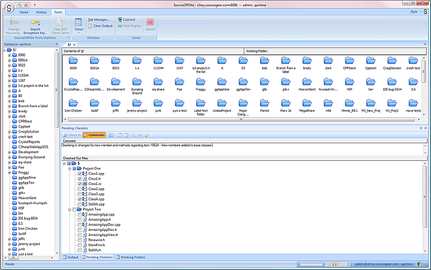 The SOS 5 client has been rewritten from the ground up. It looks, feels, and behaves like a modern, powerful Source Control client — which is just what it is. SOS 5 lets you open multiple tabs, to see simultaneous history views, search results, and project listings all at once.