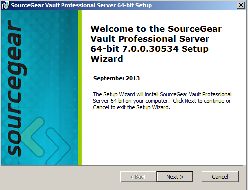 If you are unable to connect to the Vault Server after installation, review Vault installation Help and search the SourceGear Support Forum at support.sourcegear.com.