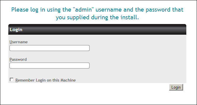Enter the username and password you chose in the Vault Administration dialog during the installation. Vault is now installed and ready for you to add license keys.