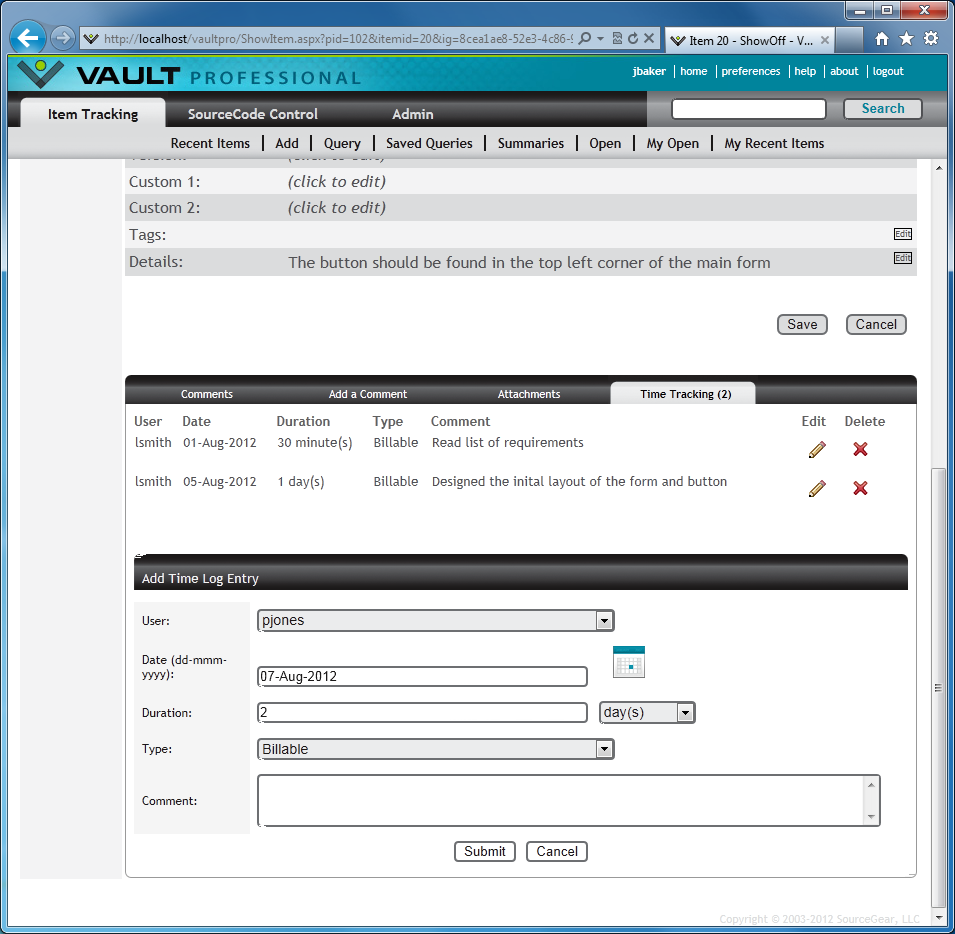 Vault Client - Time Log
