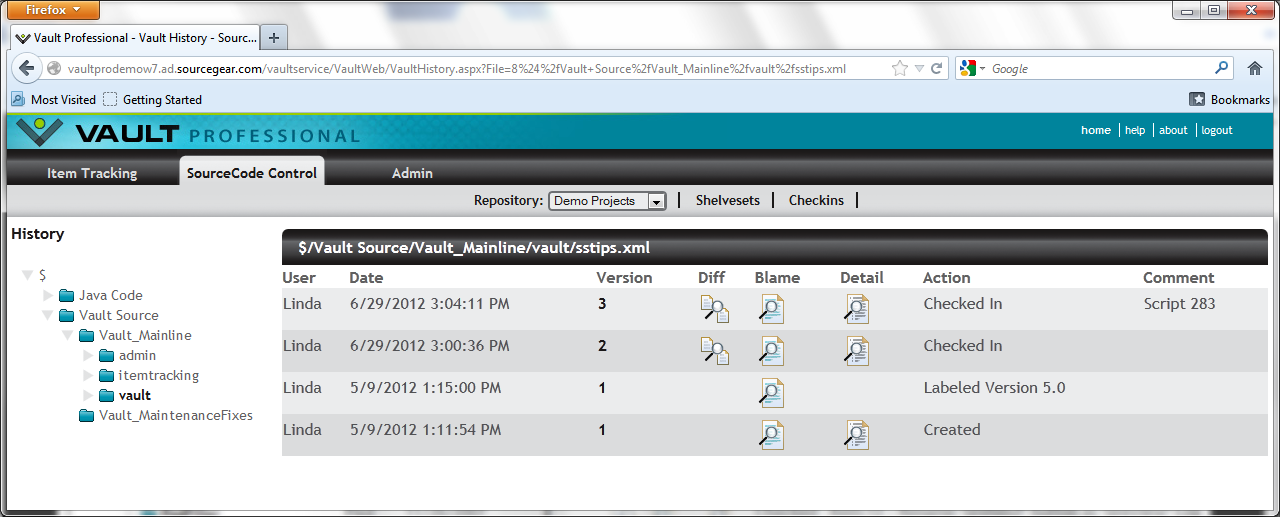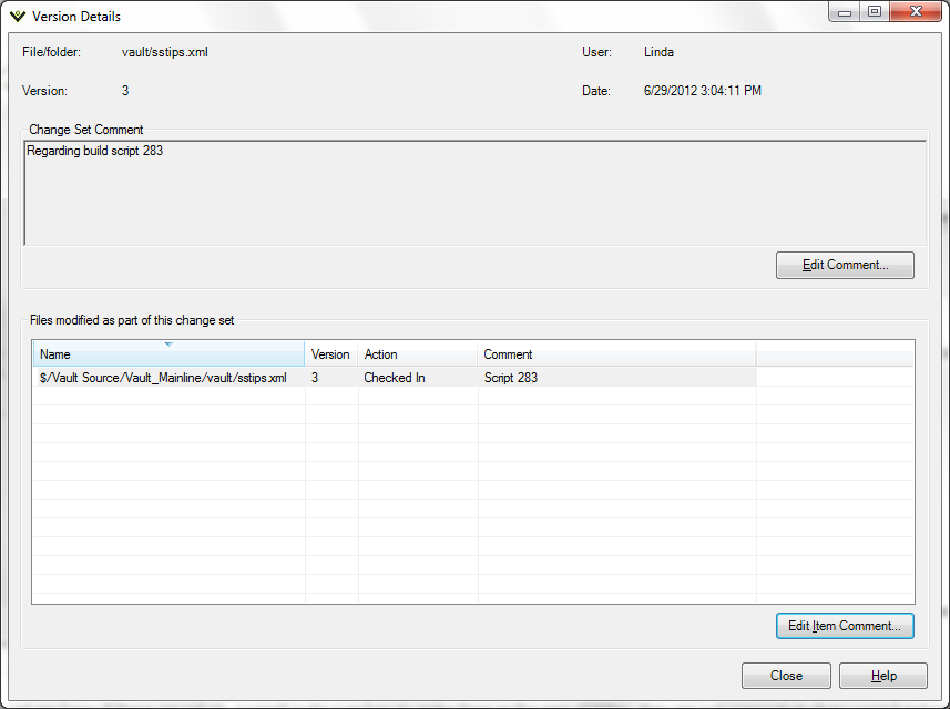 Vault Client - Changeset Detail