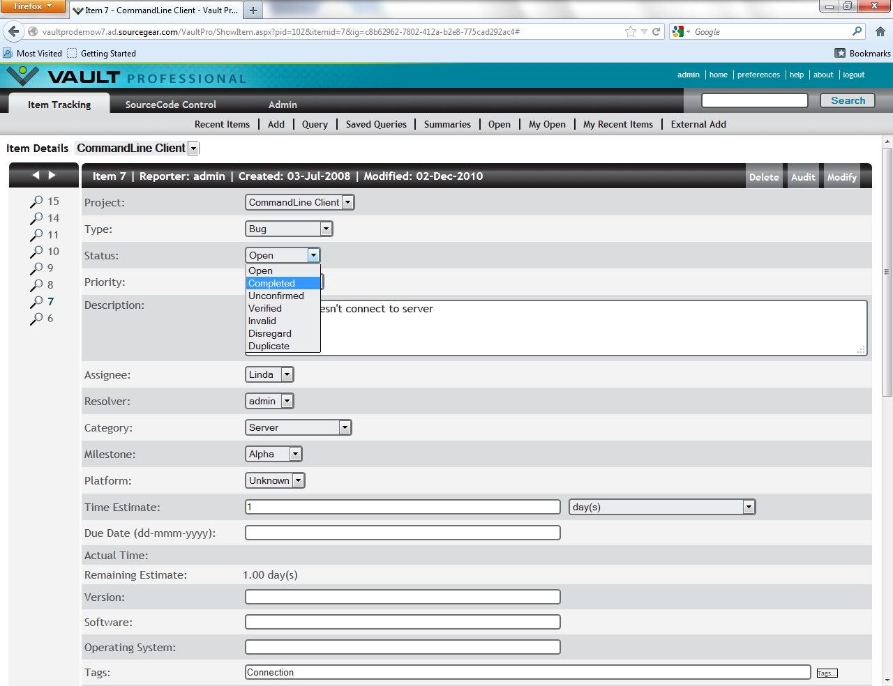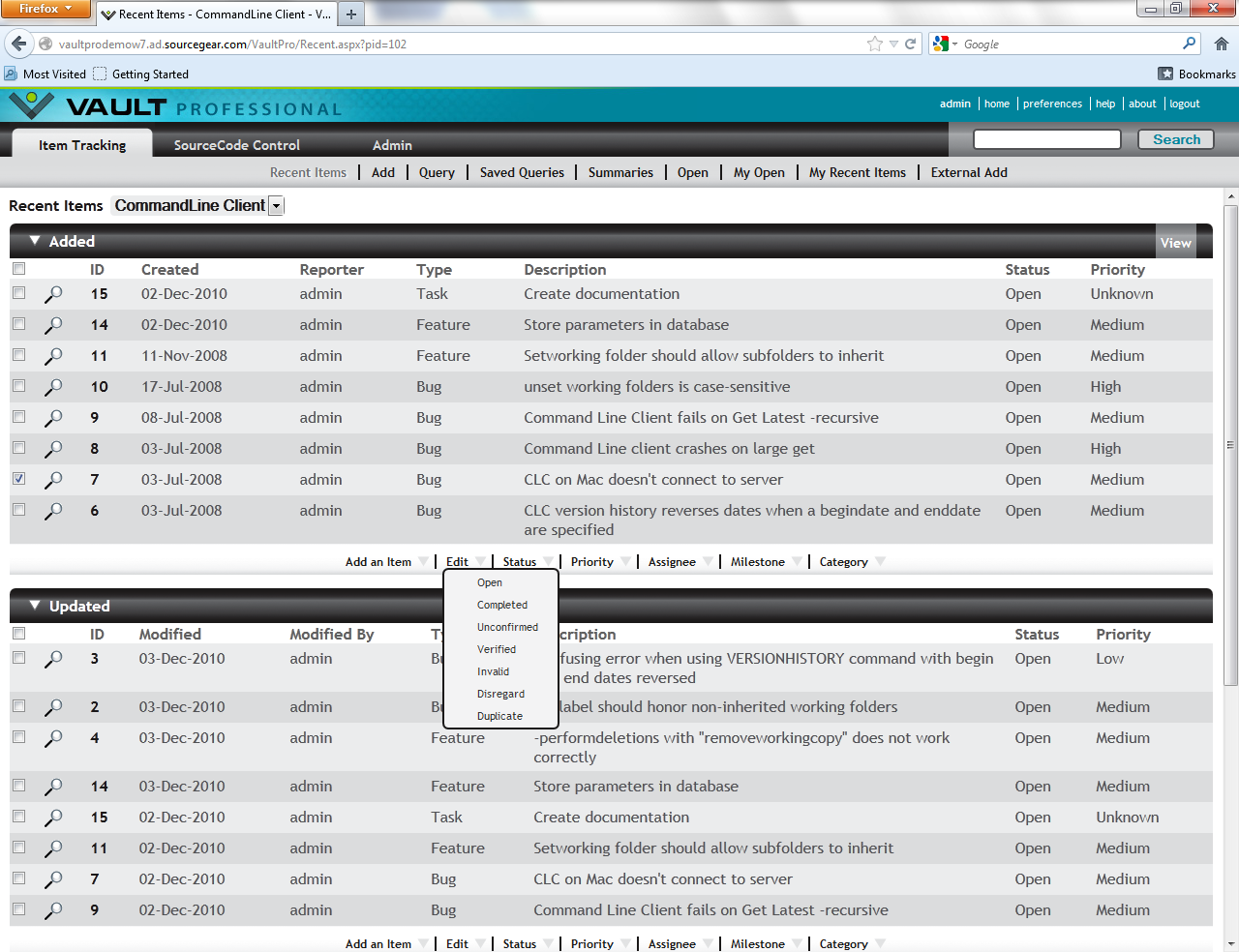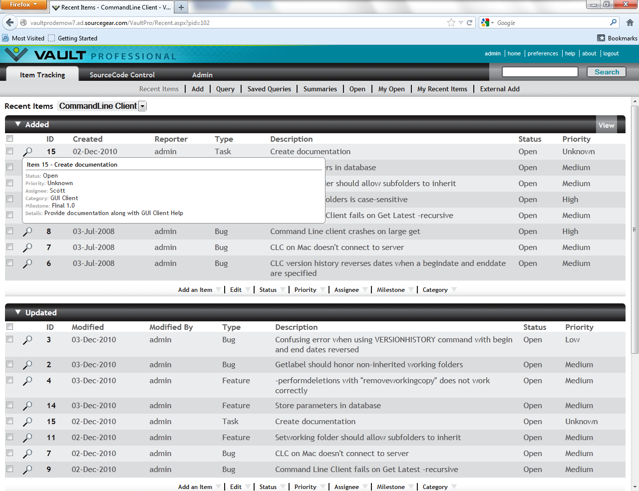 Vault Client - Work Item Tracking