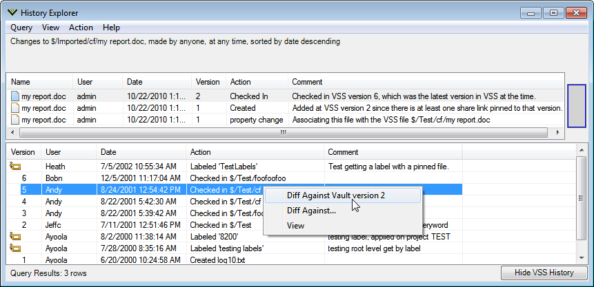Vault Client - History Query